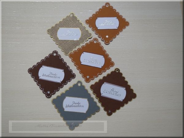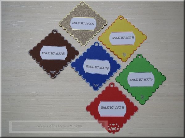 Ich selbst kann mir auch nie länger als 3 Tage merken, wem welches Paket gehören sollte, daher sind Geschenkanhänger für mich einfach toll. Natürlich kann man schlichte, oder auch aufwendigere Geschenkanhänger werkeln. Einige davon sind auch hier mit Tapete gestaltet. Ich persönlich finde ja, dass sie dadurch wesentlich edler wirken.